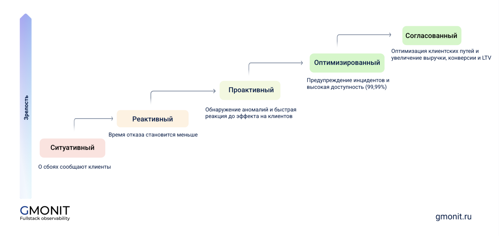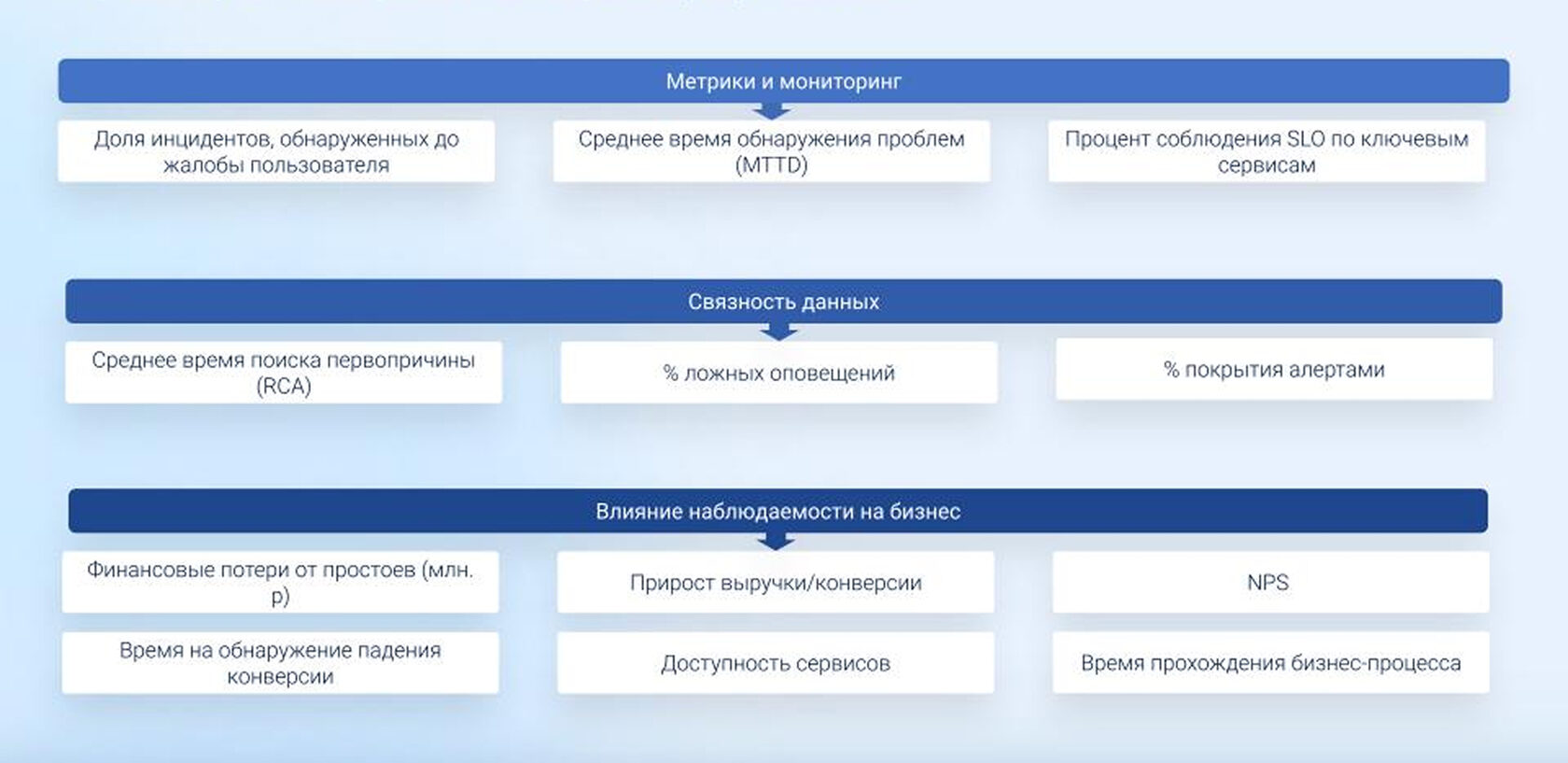 Наблюдаемость служит стратегическим активом, который напрямую влияет на выручку, удовлетворенность клиентов и репутацию. ИТ-команда и топ-менеджмент работают как единый механизм.