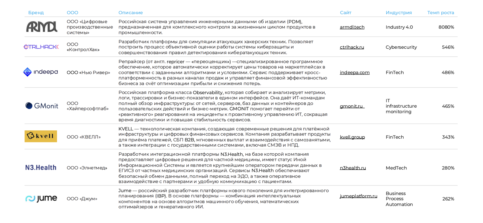 исследовании приняли участие 162 компании из реестра Минцифры с выручкой от 100 млн до 250 млн рублей, которые удвоили показатели по сравнению с 2023 годом. В этом году отбор стал строже: в рейтинг вошли только продуктовые компании с подтвержденной выручкой и устойчивыми темпами роста. Первоначальная выборка включала 3 297 компаний. Эксперты сфокусировались на проектах, которые создают собственные ИТ-решения, поэтому из опроса исключили заказную разработку, ИТ-консалтинг и системную интеграцию.